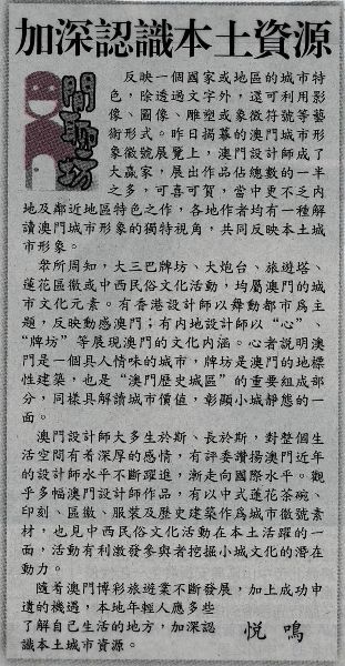 由澳門設計師協會與澳門基金會合辦的“澳門城市形象徽號及澳門城市形象推廣計劃”設計賽展覽昨揭幕,展出兩岸四地及加拿大等地近八十名參賽者逾二百幅澳門城市徽號作品,各地作者透過比賽表達對澳門的認知,藉此引發更多居民積極參與及討論創建澳門未來城市形象的最佳方案。