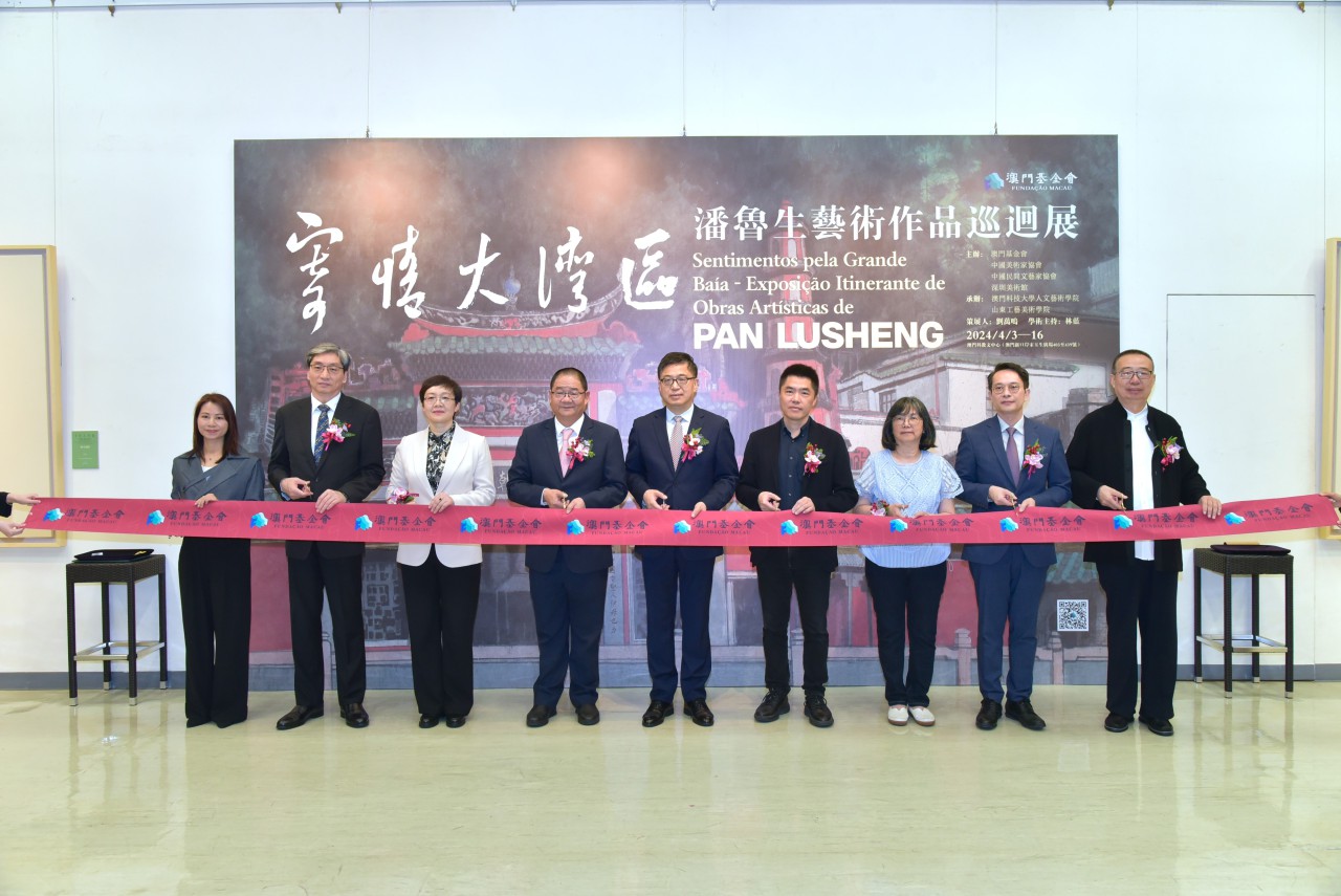 由澳門基金會、中國美術家協會、中國民間文藝家協會及深圳美術館主辦,澳門科技大學人文藝術學院及山東工藝美術學院承辦的“寄情大灣區──潘魯生藝術作品巡迴展”已於2024年4月3日(星期三)18:30,在澳門教科文中心展覽廳及多功能廳揭幕,展覽通過粵港澳大灣區主題創作和大灣區民藝調研記錄兩個展示單元,展出潘魯生以粵港澳大灣區為主題創作的彩墨作品。