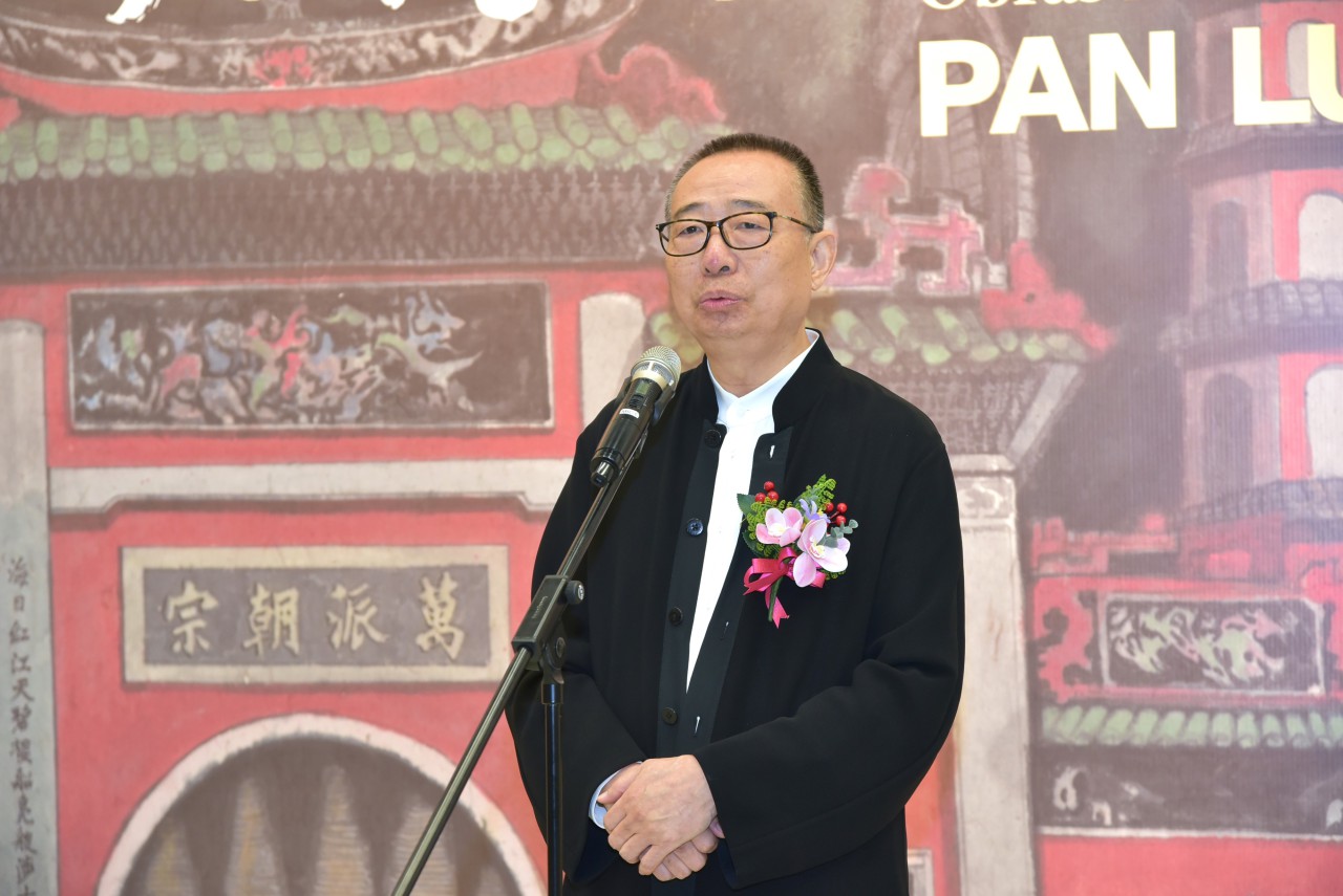 吳志良致辭表示,潘魯生數十年來深入田野鄉間,不遺餘力地推動中國民間文藝的傳承,尋找中華傳統文化的基因,這種精神值得學習。他感謝潘魯生多年來的努力和付出,保留灣區居民的共同記憶,推動人文灣區建設,且取得了豐碩的成果,並透過展覽呈現給公眾。期望潘魯生繼續為澳門的文化發展,以及大灣區的人文建設出謀獻策。