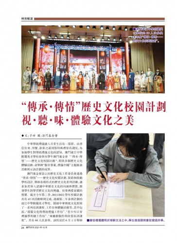 澳門基金會自2010年起主辦由文化和旅遊部在2005年倡議舉辦的“港澳大學生文化實踐活動”,至今組織超過400名澳門大學生到國家級文博機構接受專業指導,參訪研習,見證祖國繁榮發展,擔當傳揚中華優秀文化的使者。