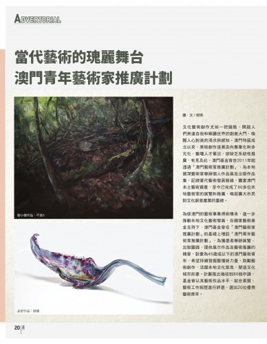 放眼世界,感受和欣賞各地藝術門户,立足家國,認知和傳承自身文化優勢,培養藝壇人才是一步一腳印的工程,「學習藝術史能讓我們認識世界,同時我們亦要瞭解自己地方的藝術家,知道自身文化定位。」獲選為第5位參與澳門青年藝術家推廣計劃(下稱:青年藝推計劃)的蔡國傑如此形容該計劃的重要意義。