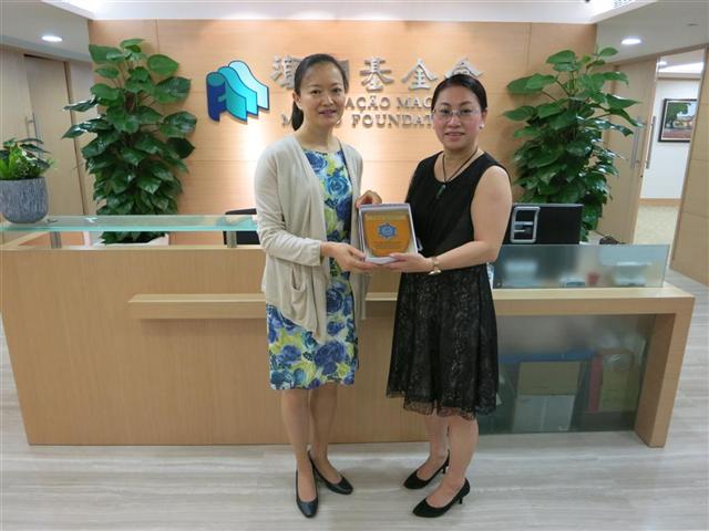No passado dia 8 de Agosto (sexta-feira), na parte da manhã, uma delegação da Associação Alfândega (Polícia Marítima e Fiscal) Aposentados de Macau, composta por 7 elementos, efectuou uma visita à sede da Fundação Macau, onde foi recebida calorosamente pelo membro do Conselho de Administração e pela Chefe do Departamento de Subsídios e Cooperação, substituta, Zhong Yi Seabra de Mascarenhas e Rebeca Leong, respectivamente.