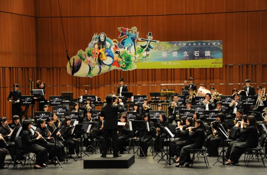 “As Melhores Músicas de Joe Hisaishi - Concerto Aberto ao Público da Fundação Macau”, organizado pela Fundação Macau e Associação de Regentes de Banda de Macau (sigla “MBDA”) teve lugar no Grande Auditório do Centro Cultural de Macau no dia 14 de Setembro de 2012, sexta-feira, às 8 horas da noite. A cerimónia de corte de fita foi presidida por Zhang Xiaoguang, Sub-director do Departamento de Cultura e Educação do Gabinete de Ligação do Governo Central da RAEM, Zhang Yunfei, Sub-director do Departamento dos Assuntos Gerais do Comissariado do Ministério dos Negócios Estrangeiros na RAEM, Au Weng Chi, Membro do Conselho de Administração da Fundação Macau, Wong Tai Lok, Chefe do Chefe do Departamento de Subsídios e Cooperação, Leong Nga Tou, Chefe do Centro UNESCO de Macau, ambos da Fundação Macau, Leong Kin Hang, Presidente da MBDA, Leong Pui Long, Maestro da Banda Sinfónica Juvenil de Macau. Muitos pais acompanharam os filhos e os bilhetes para o concerto esgotaram.