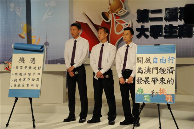 A 2.ª edição do “Concurso sobre Conhecimentos Comerciais dos Estudantes Universitários” realizou-se em 13 de Abril no Fórum de Macau (Pavilhão II) e participaram no Concurso 14 equipas representativas das 9 instituições do ensino superior de Macau. Depois de 4 sessões de pré-selecção, realizou-se a sessão final e a Equipa Universitária Leng Hei consagrou-se campeã e as Equipas Dragão Comercial da Universidade de São José e da Escola Superior das Forças de Segurança de Macau ocuparam, respectivamente, o 2.º e o 3.º classificados.