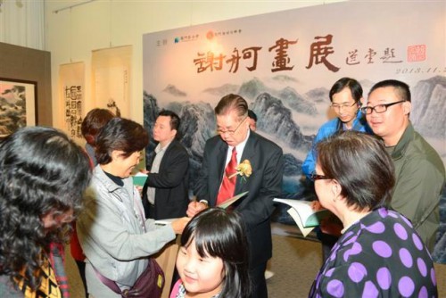 A cerimónia de inauguração foi presidida pelo Sr. Che Ho, e contou com as presenças de Au Weng Chi, Membro do Conselho de Administração da Fundação Macau, Hoi Sai Un, Presidente Fundador da Associação dos Conterrâneos de Chio Chao de Macau, Lei Heong Iok, Presidente do Instituto Politécnico de Macau, Lok Po, Presidente do Jornal “Diário de Macau”, Sio In Leong, representante do Instituto Cultural, Lai Ieng, Presidente da Associação dos Artistas de Belas-artes de Macau, Lao Ngai Leong, Presidente da Associação dos Conterrâneos de Chio Chao de Macau, e Chan San Tao, Director da Associação dos Conterrâneos de Chio Chao de Macau. Estiveram presentes muitos colegas e amigos para congratular o Artista e a cerimónia decorreu num ambiente muito animado.