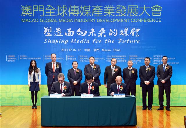 Com vista a promover o intercâmbio entre as pessoas que trabalham na área da comunicação social em Macau e no exterior, realizou-se com sucesso em Macau a Conferência Mundial sobre “Desenvolvimento da Indústria dos Media”, subordinada ao tema “Shaping Media for the Future”. A organização deste evento esteve a cargo da Agência China News em conjunto com o Jornal Diário Ou Mun e contou com os importantes apoios da Fundação Macau e do Gabinete de Comunicação Social do Governo da RAEM. Os participantes vieram do Interior da China e do exterior e na Conferência foram abordados temas sobre o desenvolvimento e digitalização dos media e a cooperação mundial dos meios de comunicação social, de modo a encontrar o caminho futuro do desenvolvimento para a indústria dos media. Perante a presença de Sua Excelência o Chefe do Executivo da RAEM, Chui Sai On, a Agência China News, o Jornal Diário Ou Mun e as entidades organizadoras do “Dia dos Media” em Munique, que é a maior exposição da Europa nesta área, onde foi assinada uma carta de intenção para a cooperação e aproveitamento das vantagens competitivas e dos recursos de cada uma das partes e para se criar em Macau uma plataforma de cooperação e intercâmbio para a indústria dos Media da China e dos Países Europeus.