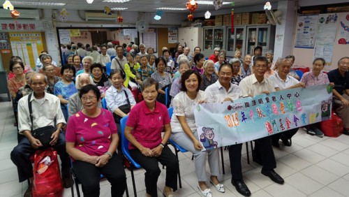 Os idosos do Centro apresentaram programas de canções aos convidados de honra e o Dr. Wu Zhiliang entregou os sacos aos idosos, um a um, num ambiente muito afectuoso.