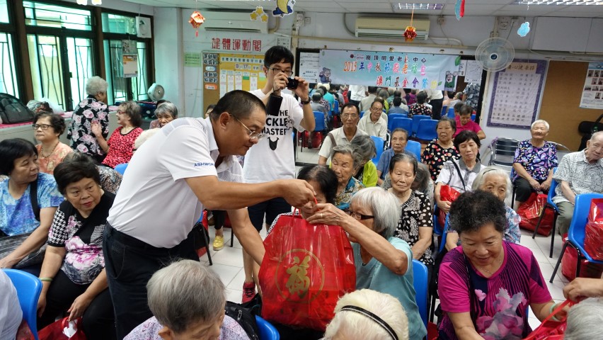 À tarde do dia 16 de Setembro, o Centro para Idosos da Casa Ricci realizou a Acção de Oferta de “Sobrescritos Auspiciosos de Chong Chau, 2015” para os idosos e convidou o Dr. Wu Zhiliang, Presidente do Conselho de Administração da FM, para presidir ao acto e esteve acompanhado pelo Dr. Pun Chi Meng, Secretário-Geral de Caritas Macau. Este ano, o número de beneficiários da Acção atingiu 2000.