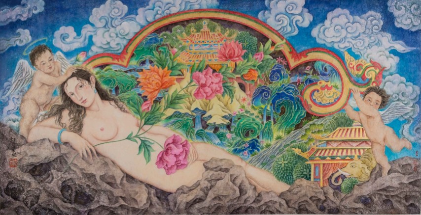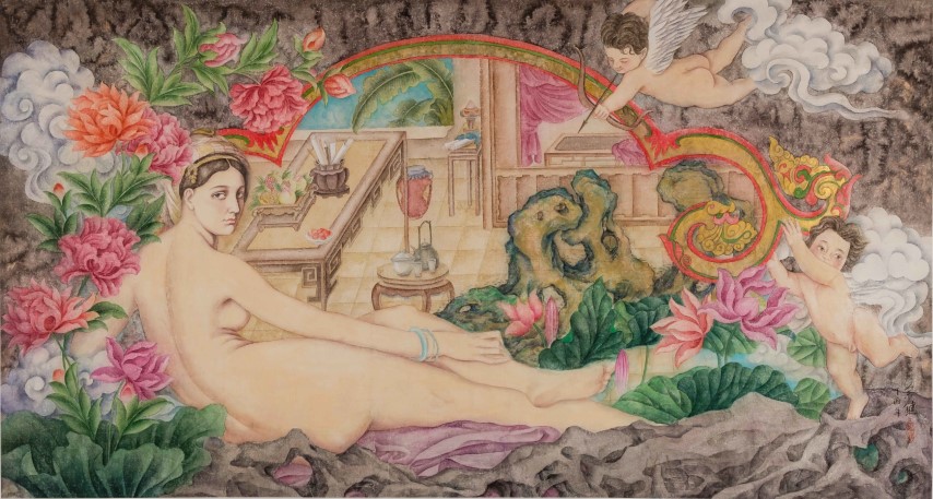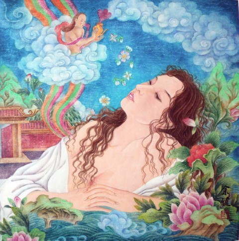 As obras da referida Mestre envolvem o budismo, personalidades, flores, pássaros e paisagens. A pintora pertence à Escola Realista e as suas obras reflectem bem o seu espírito. Além disso, nas suas obras podemos ver que coexistem as técnicas ocidentais e orientais que são uma das características comuns nas suas pinturas.