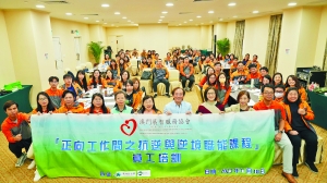 澳門展智服務協會為增進員工團隊凝聚力,於十一月十八日在勵庭海景酒店舉辦“正向工作間之抗逆與逆境職能課程”員工培訓,邀得香港資深培訓經驗導師吳忠泰主講,帶領員工重新思考工作間定義及認識自我,透過解難遊戲建構團隊的合作意識。該會理事代表及員工共七十四人參與,得到澳門基金會及澳門商業銀行贊助。