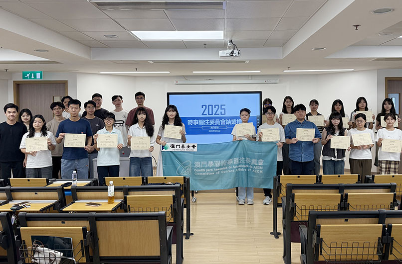 澳門中華學生聯合總會二○二四/二○二五年度時事關注委員會(以下簡稱“時委會”)於日前舉行結業禮。活動總結過去一年培訓成效,近二十名與會成員進行結業報告滙報,並分享收穫和感受,認為時委會提供平台予學生就社會議題發表意見,有助提高學生關心社會的主動性及積極性。活動受澳門基金會資助。