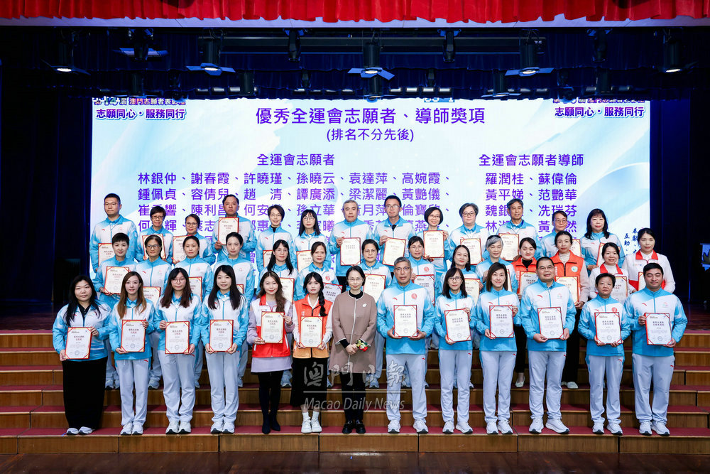 林倫偉表示,過去一年志總及分會累計開展活動與培訓逾900項,參與人次突破2.8萬人,累計服務時數約13萬小時,直接惠及20萬市民。服務全運會方面,志總開展120輪系統培訓與近300場實踐活動,賽事期間,270名澳門志願者在指引、後勤支援等崗位奉獻近1,900小時,成為大賽順利舉行的重要支撐。強調志願服務是澳門社會文明的重要標識,眾多志願者以行動踐行“奉獻、友愛、互助、進步”精神,為澳門和諧發展注入溫暖動力。