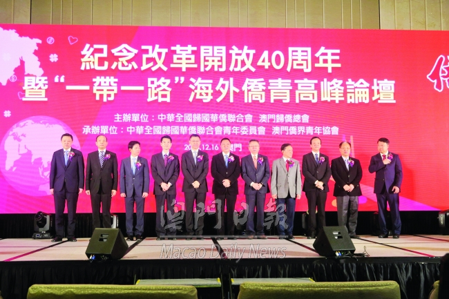 下午,同場舉辦“紀念改革開放四十周年暨‘一帶一路’海外僑青高峰論壇”之粵港澳大灣區經濟、旅遊、公益沙龍,晚上舉辦澳門僑界青年協會成立十周年晚宴。